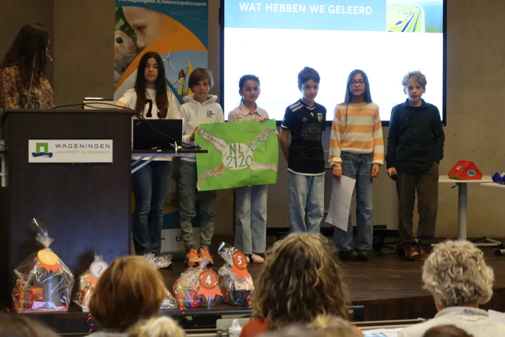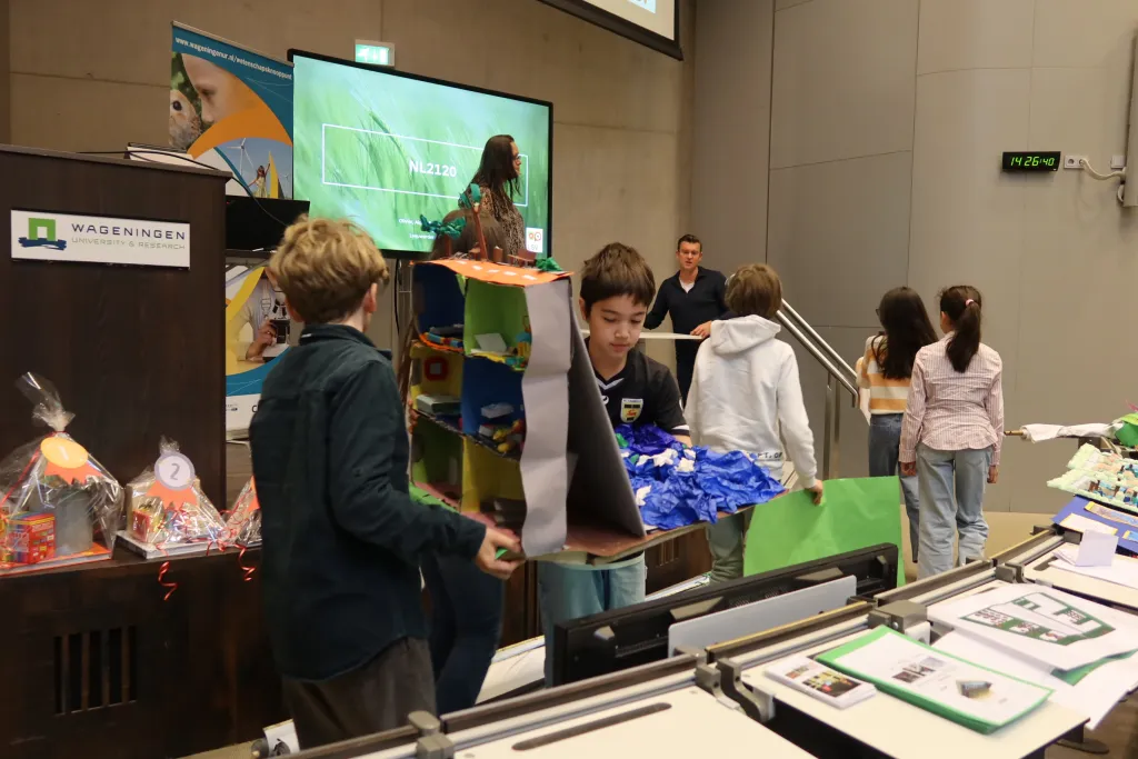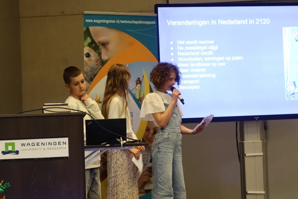 Wageningen werd op woensdag 1 april even overgenomen door basisschoolleerlingen met grootse plannen. Tijdens de finale van de Ontwerpwedstrijd streden vijf teams om het beste ontwerp voor Nederland in 2120. Van kwartetspellen tot huizen in de dijk.