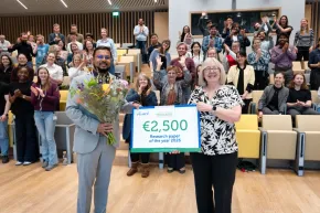 De prijsuitreiking vond plaats tijdens het symposium voorafgaand aan de 104e Dies Natalis van Wageningen University & Research (WUR) op 9 maart. Voorzitter van de jury Rumyana Karlova, assistant professor bij het Laboratorium voor Plant Fysiologie, reikte de prijs uit.